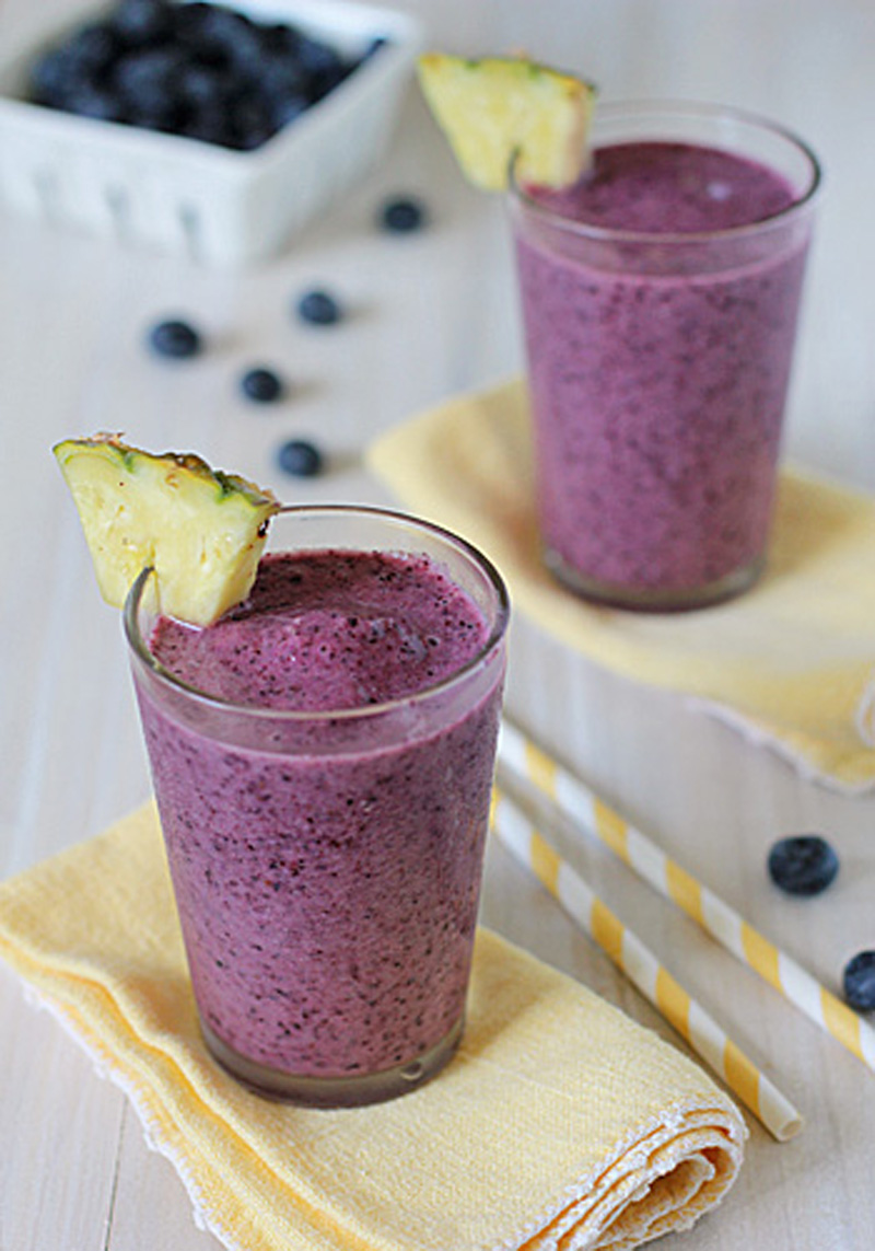 What a gorgeous smoothie! Love that color 🙂 And pineapple and blueberries go amazing well together!