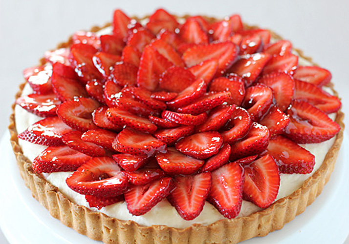 So that's how they make the strawberries glisten! The tart looks delicious — it could also be modified by adding about 1/2 to 1 t. saffron and 1 T. honey to the ganache, then topping with slivered almonds and mango, papaya, or even oranges. Or steeping the cream with chamomile and lavender (strain before adding to white choc.), then topping with sliced pears or the strawberries. Great recipe as is or for endless variations. Thank you for posting!